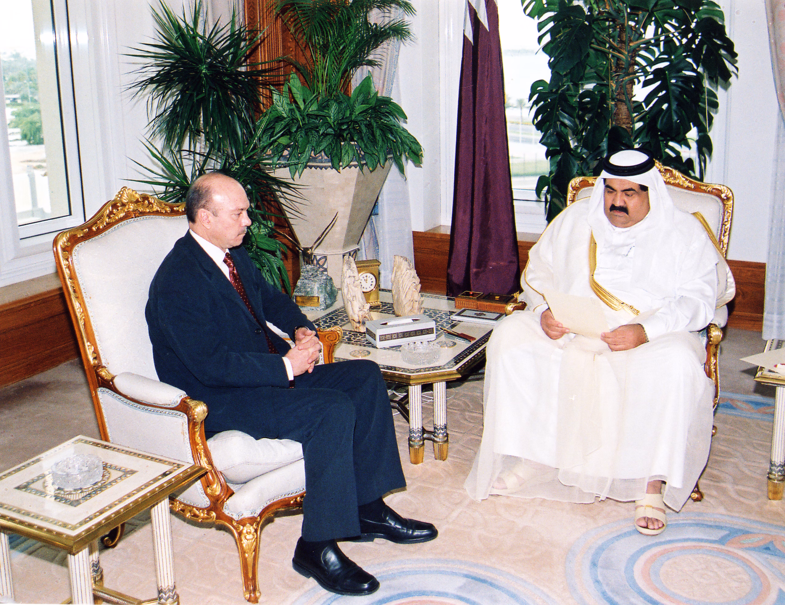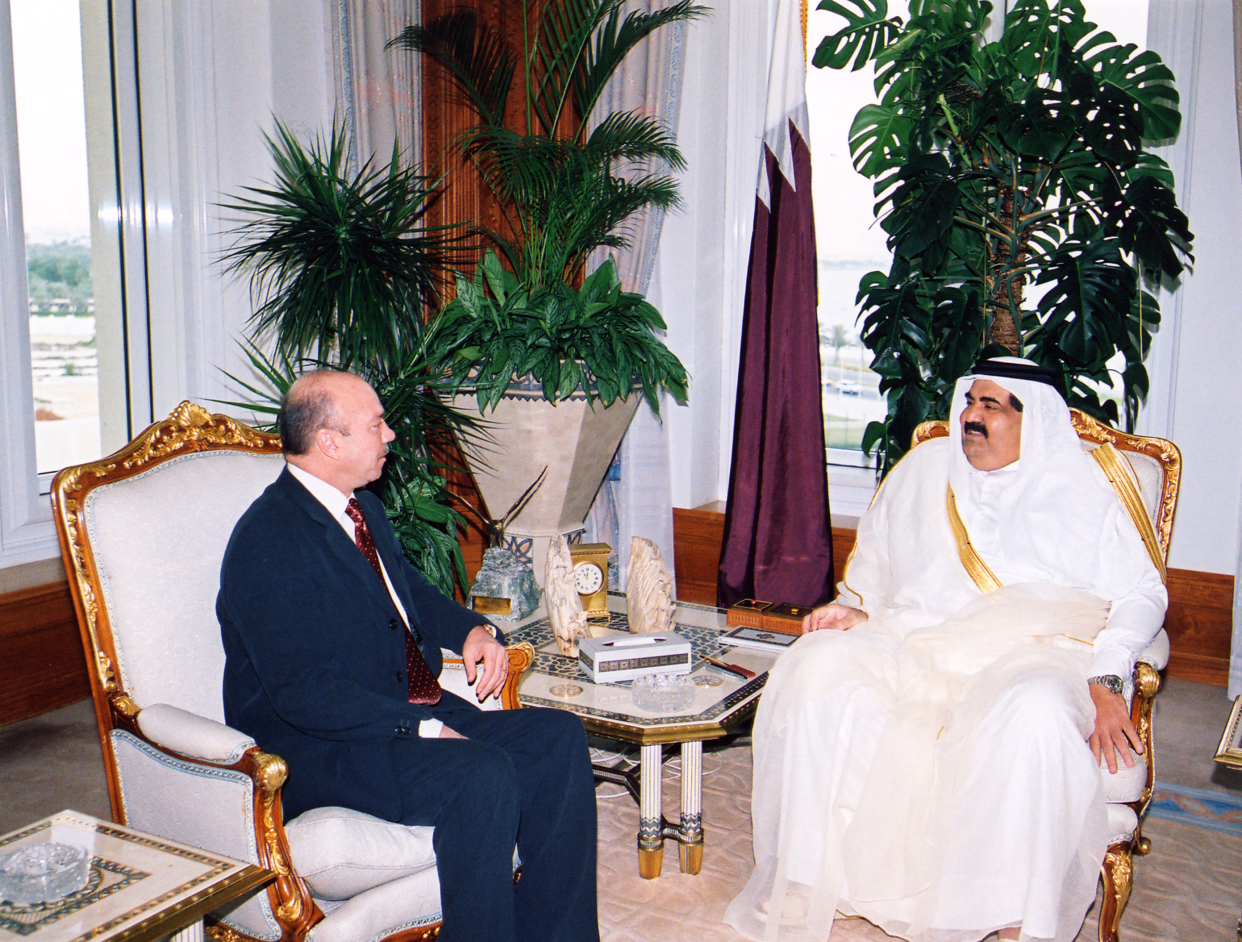 سمو الأمير الشيخ حمد بن خليفة آل ثاني يستقبل دولة رئيس وزراء المملكة الأردنية الهاشمية السيد فيصل الفايز في الدوحة بتاريخ 13 يناير 2004، حيث سلَّم دولته لسموه رسالة خطية من جلالة الملك عبد الله الثاني بن الحسين، وذلك بحضور معالي النائب الأول لرئيس مجلس الوزراء وزير الخارجية الشيخ حمد بن جاسم بن جبر آل ثاني