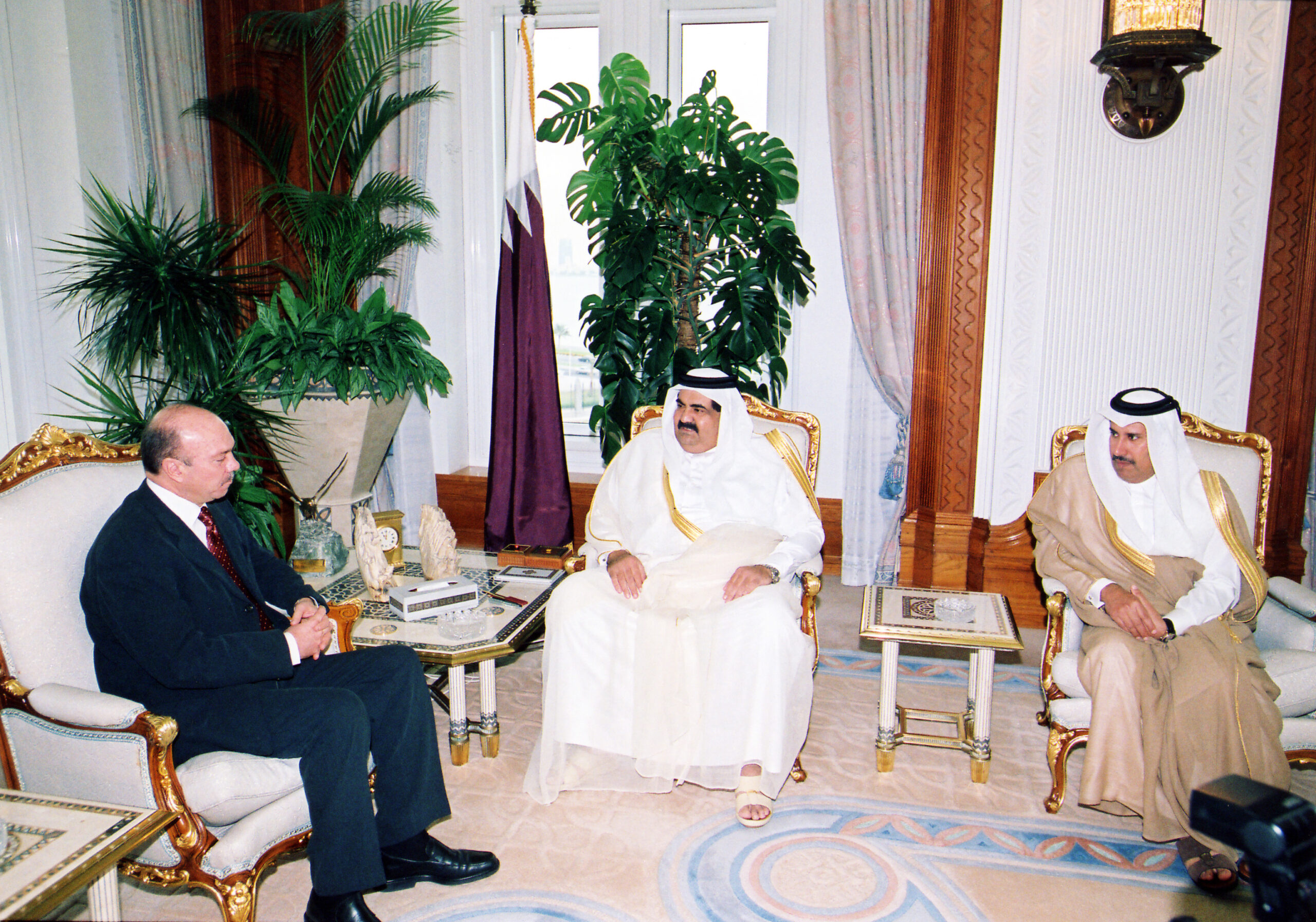 سمو الأمير الشيخ حمد بن خليفة آل ثاني يستقبل دولة رئيس وزراء المملكة الأردنية الهاشمية السيد فيصل الفايز في الدوحة بتاريخ 13 يناير 2004، حيث سلَّم دولته لسموه رسالة خطية من جلالة الملك عبد الله الثاني بن الحسين، وذلك بحضور معالي النائب الأول لرئيس مجلس الوزراء وزير الخارجية الشيخ حمد بن جاسم بن جبر آل ثاني